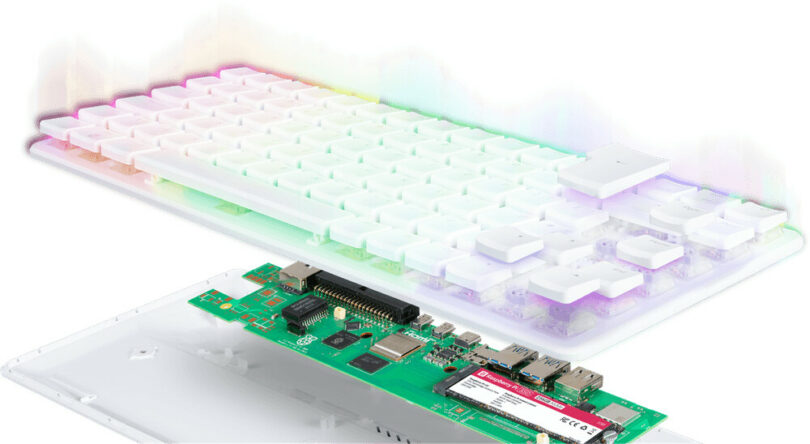 With the recent sale of Commodore to a group of enthusiasts – and the subsequent Commodore 64 Ultimate launch – the PC-in-a-Keyboard has returned to the fore of some enthusiasts’ thoughts. It’s the ideal form factor really – allowing you to have a completely clear desk, a thin screen, and as few wires as possible. Alas, the performance of such machines has understandably lagged behind since we moved on from Zilog Z80s and their ilk.
